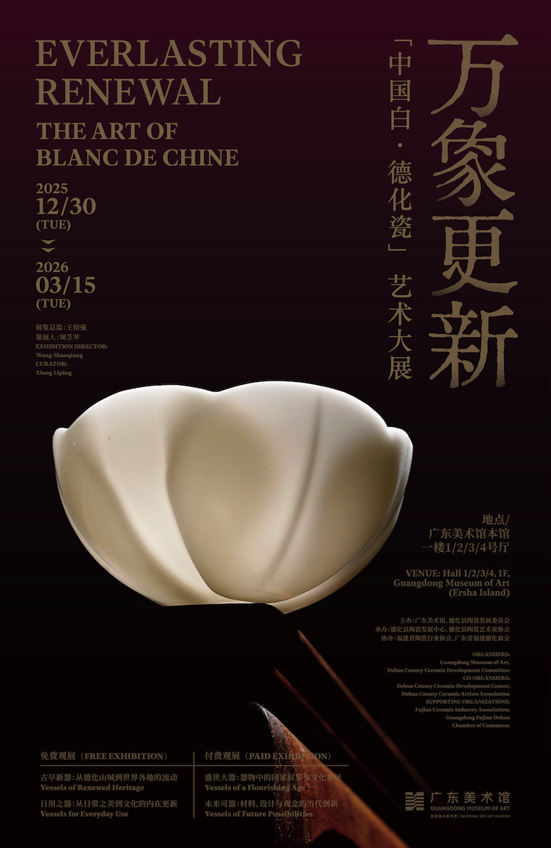 简介:德化瓷素有“中国白”之誉,其“白”不仅是色调,更承载着清净、澄明、简淡的中国好意思学理念念。将德化瓷带到广州这一海上丝绸之路的紧迫节点,既是追想古代商业与漂后交流的轨迹,亦然在现代海外视线中从头疑望“中国白”的深嗜。展览关怀德化瓷如安在时期变迁中,通过捏续的自我更新展现文化本体。