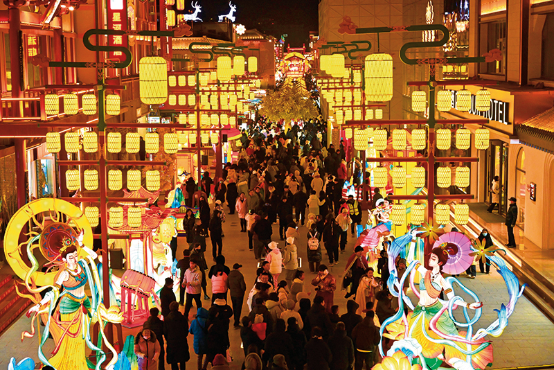 “高高尚首的飞马灯、流光溢彩的葫芦灯,灯影里三兔共耳的纹样、随明暗升沉的宝相花,透出浓浓的年味儿。”付霞说。