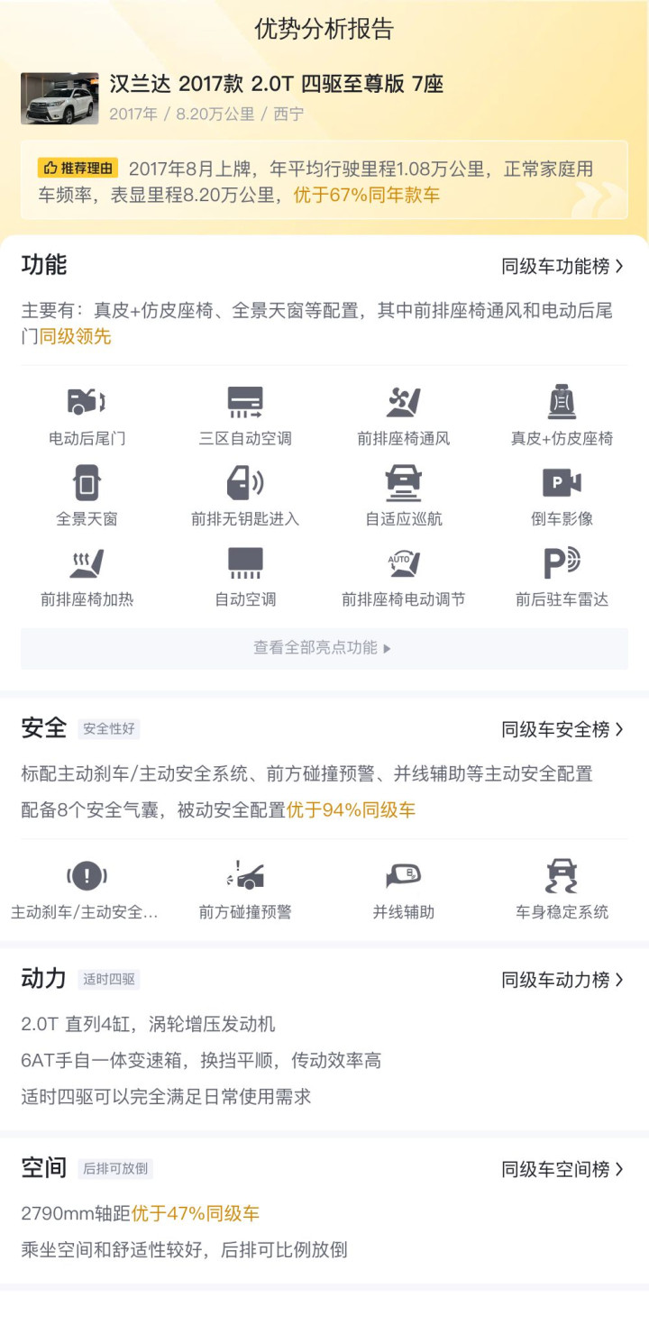 2000年,丰田汉兰达问世九游体育app官网,赶紧以其宽大的车身和浩大的空间取得市集好评。2007年,广汽丰田防备坐褥汉兰达,它凭借大尺寸车身和强劲能源性能,加上丰田品牌的品性保证,成为繁密家庭用户的首选。今天要说的这辆汉兰达2017款2.0T四驱至尊版7座,是一辆典型的“一手多花”车型,因为它的行驶里程惟有8.2万公里,但是售价仍是来到了16.8万,究竟是不是像说的那么好,咱们往下看。