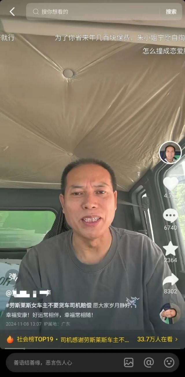 随后,劳斯莱斯车主先是回话称,要是定损超出保障金额,将由其我方承担。2024年11月7日晚,该车主再发视频回话,暗示我方依然跟货车司机疏导过,决定不需要货车司机的抵偿,也不需要货车的保障来抵偿,我方去修就好了。