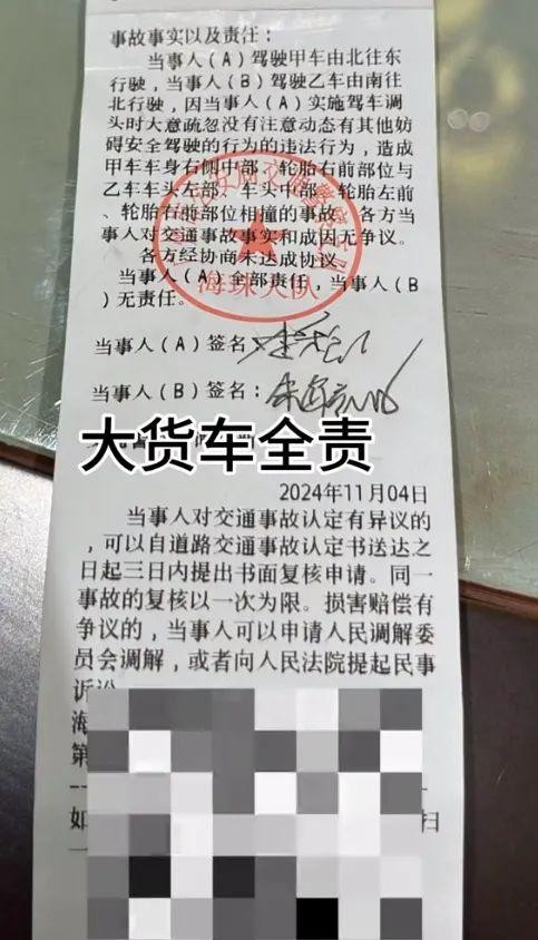 车祸中大货车全责。红星新闻