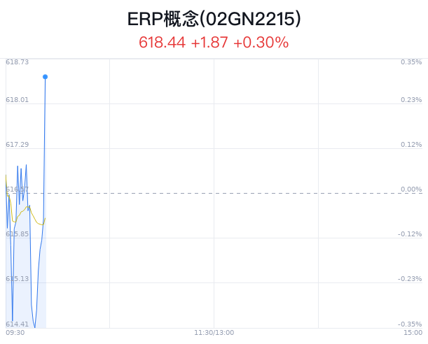 06月17日,ERP主见盘中拉升,甘休09点54分,ERP主见举座指数飞腾0.55%,报617.940点。