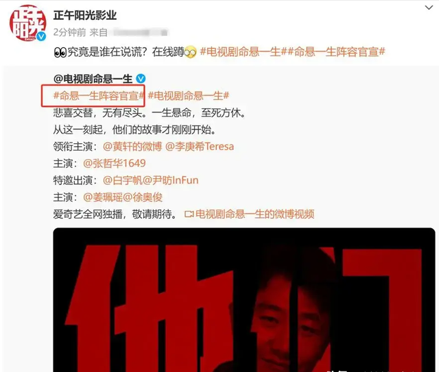 我如故想说,但愿《命悬一世》能给不雅众带来惊喜。岂论是在剧情建树上,如故在扮演上,都能有新的打破。毕竟,不雅众的眼神然而越来越高了,想要打动不雅众,可不是件容易的事。