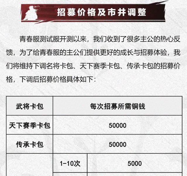 可《率土之滨》芳华服官方却主打一个听劝,玩家说武将招募所需的铜钱太多,立马改!玩家念念要公测新增超值月卡,反手就安排,你说够不够有Passion?