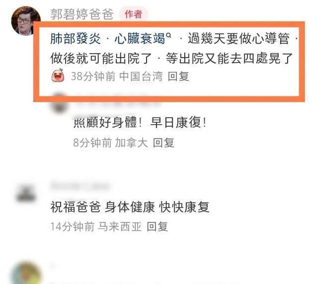郭碧婷的父亲 recently 示意我方仍是在病房里“度假”了一个月。老爷子的心态十分乐不雅,还酷爱地称我方这是在放假。他惊奇谈,跟着年龄增长,躯壳不免会出现多样问题,东谈主上了年岁后,开阔去病院也成了常事。