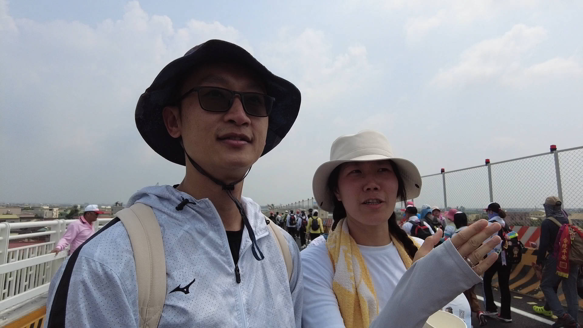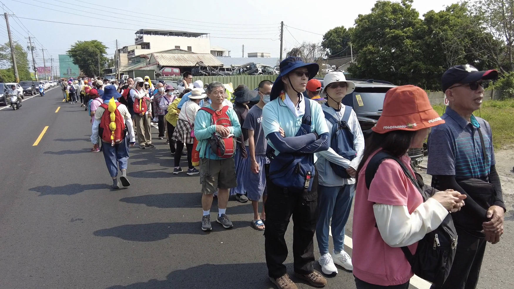 绕境进香队伍由云林县过问嘉义县,很多大众早早就守候在两县接壤处。来自台中的沈先生提前来到仑仔桥上,这是大甲妈祖从云林到嘉义的必经之路。“我是妈祖绕境的‘生人’,期待会有极度的体验。”他说。