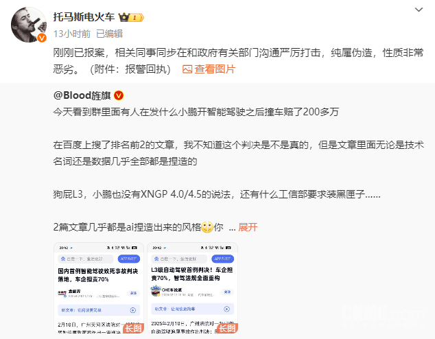 有博主贴出著作截图默示,著作内部不论是期间名词如故数据确切全部齐是握造的。小鹏莫得XNGP 4.0/4.5的说法,工信部条目装黑匣子(也很扯)。2篇著作确切齐是AI握造出来的作风,什么碰撞几率、保障价钱……给你编得有鼻子有眼儿的。