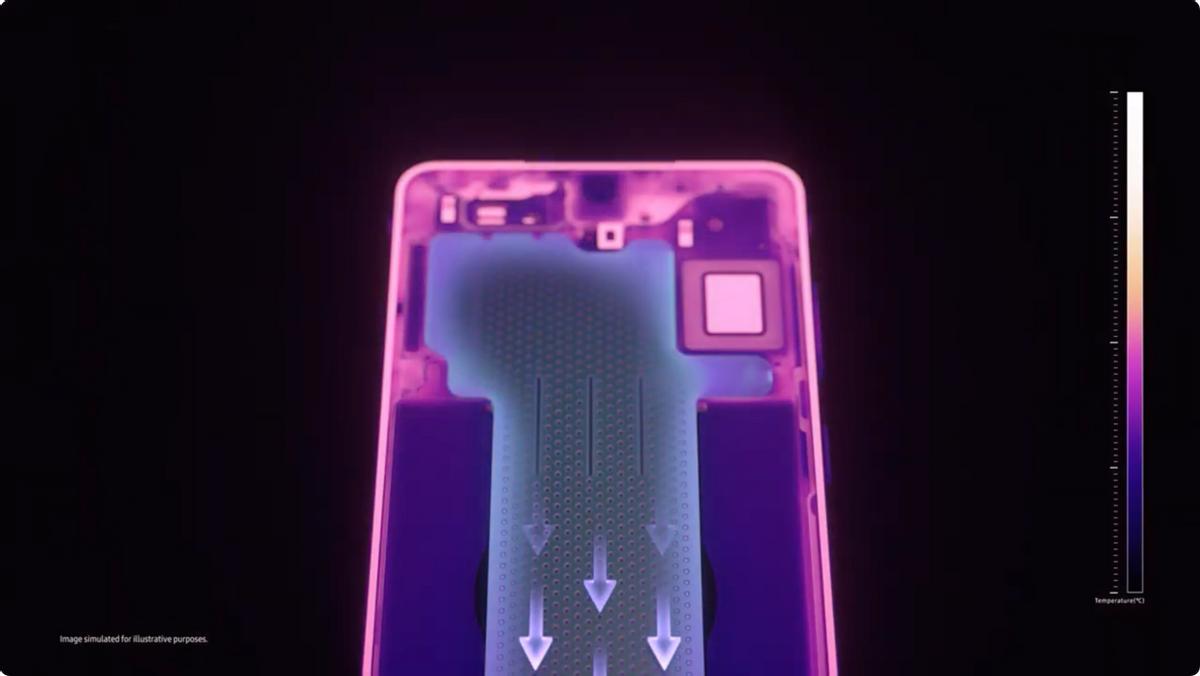 最初,S25 Edge的VC均热板面积比S25+扩大10%,即便在骁龙8至尊版芯片满载出手时,机身名义温度仍能收尾很好的截止;第二,S25 Edge 移除前置金属框架,初次在Galaxy成立中接纳'孔隙导热结构',使处理器产生的热量可平直传导至VC均热板进行散热;临了,S25 Edge 使用了定制的导热材料(TIM),并将其精密填充于处理器相近的过失,让其轻视更高效地摄取来自相邻组件的热量,从而有用进步热传导的效用。