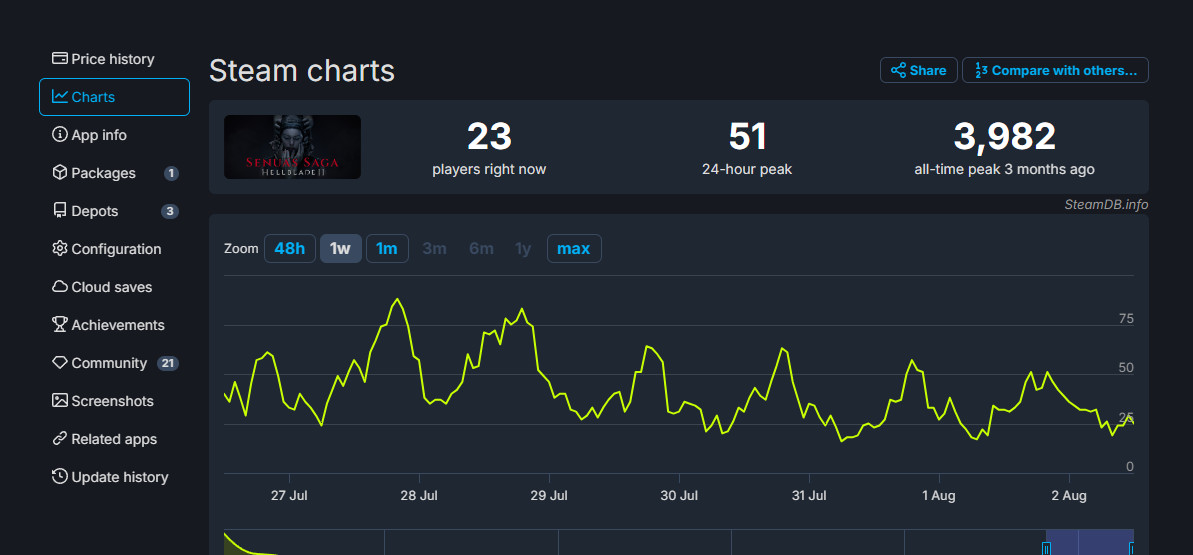 而在Xbox上,《地狱之刃2》的热度也跌出了前50名