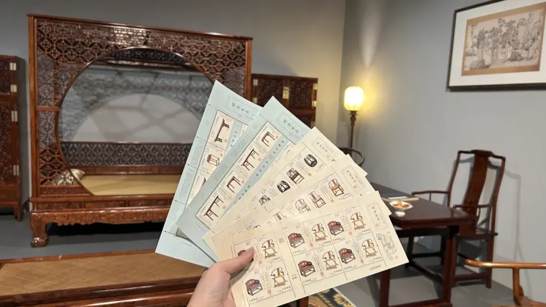 ”带着邮票逛侨博“步履的打卡配套邮票为《明清产物——坐具》与《明清产物——承具》,计算古朴检朴,体现了明清产物的历史感和艺术感。