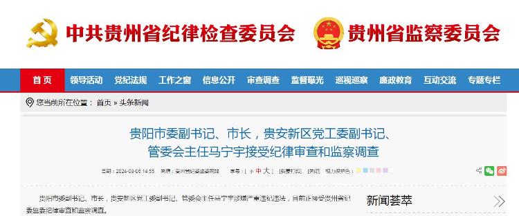 8月6日下昼,贵州省纪委监委网站发布音问称,贵阳市委副文牍、市长,贵安新区党工委副文牍、管委会主任马宁宇涉嫌严重违法犯科,现时正接纳贵州省纪委监委顺序审查和监察访谒。记者珍贵到,至马宁宇此番落马,贯穿四任贵阳市长均已被查。